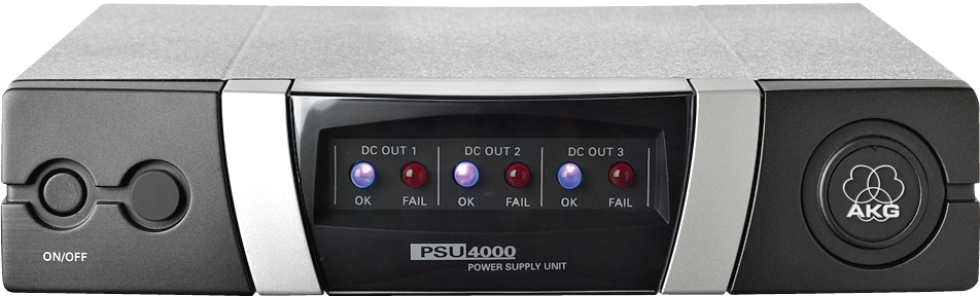 The PSU4000 is a central power supply unit for components of the WMS wireless microphone and IVM in-ear monitoring systems. It provides an IEC power socket and a switch mode power supply for worldwide use. The PSU4000 features three high current 12V/2A DC outputs via lockable DC connectors.