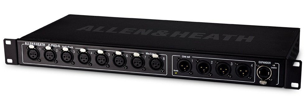 Each AR84 adds 8 XLR inputs and 4 XLR outputs to a GLD system. Up to two AR84s can be added to a GLD system, connected to an AR2412 AudioRack and / or direct to the GLD-80 mixer. Connection is over Cat5 cable running Allen & Heath’s dSNAKE protocol, allowing the AR2412 to be positioned up to 120m from the GLD-80 or GLD-112 mixer. dSNAKE provides control to the remote preamp, and all mic preamps are scene recallable.