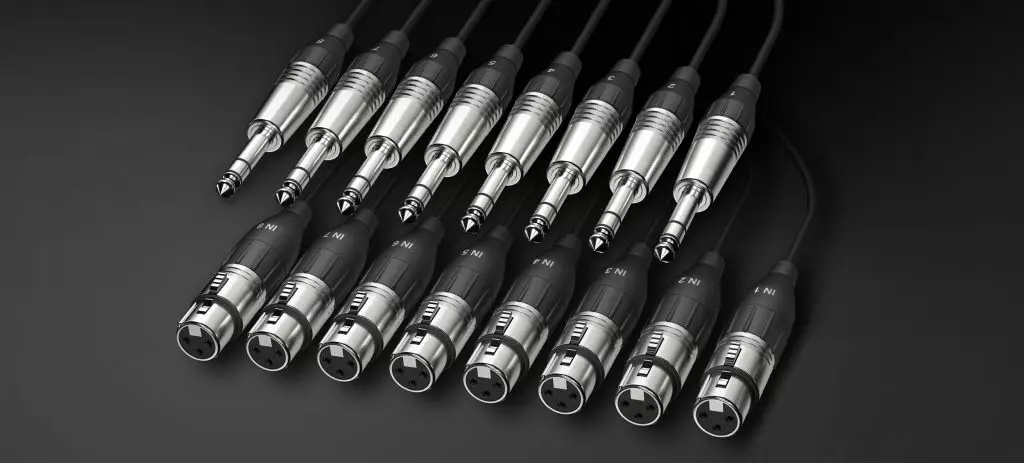 Laadukas balansoitu XLRn-TRS viuhka numeroiduilla liittimillä.