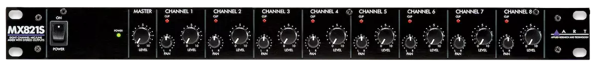 ART MX821S on monipuolinen räkkimikseri, joka yhdistää kahdeksan itsenäistä tulokanavaa stereolinjatasoiseksi lähtöksi. Jokainen tulokanava hyväksyy balansoidun XLR-mikrofonitulon tai balansoimattoman 6,35 mm:n TS-linjatasoisen signaalin ja tarjoaa erilliset tason- ja panorointisäädöt.