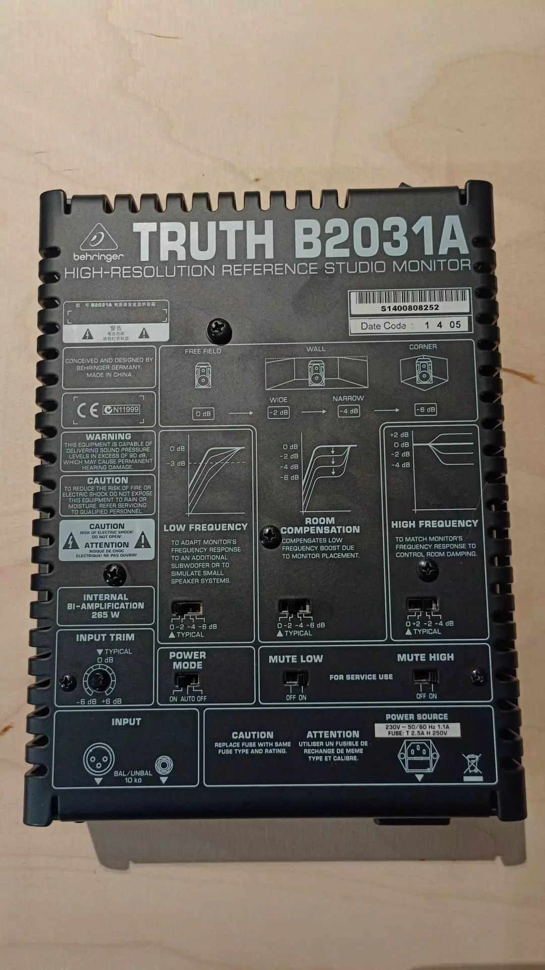 Uusi originaali bi-amp vahvistin Behringer Truth B2031A aktiivimonitoriin.