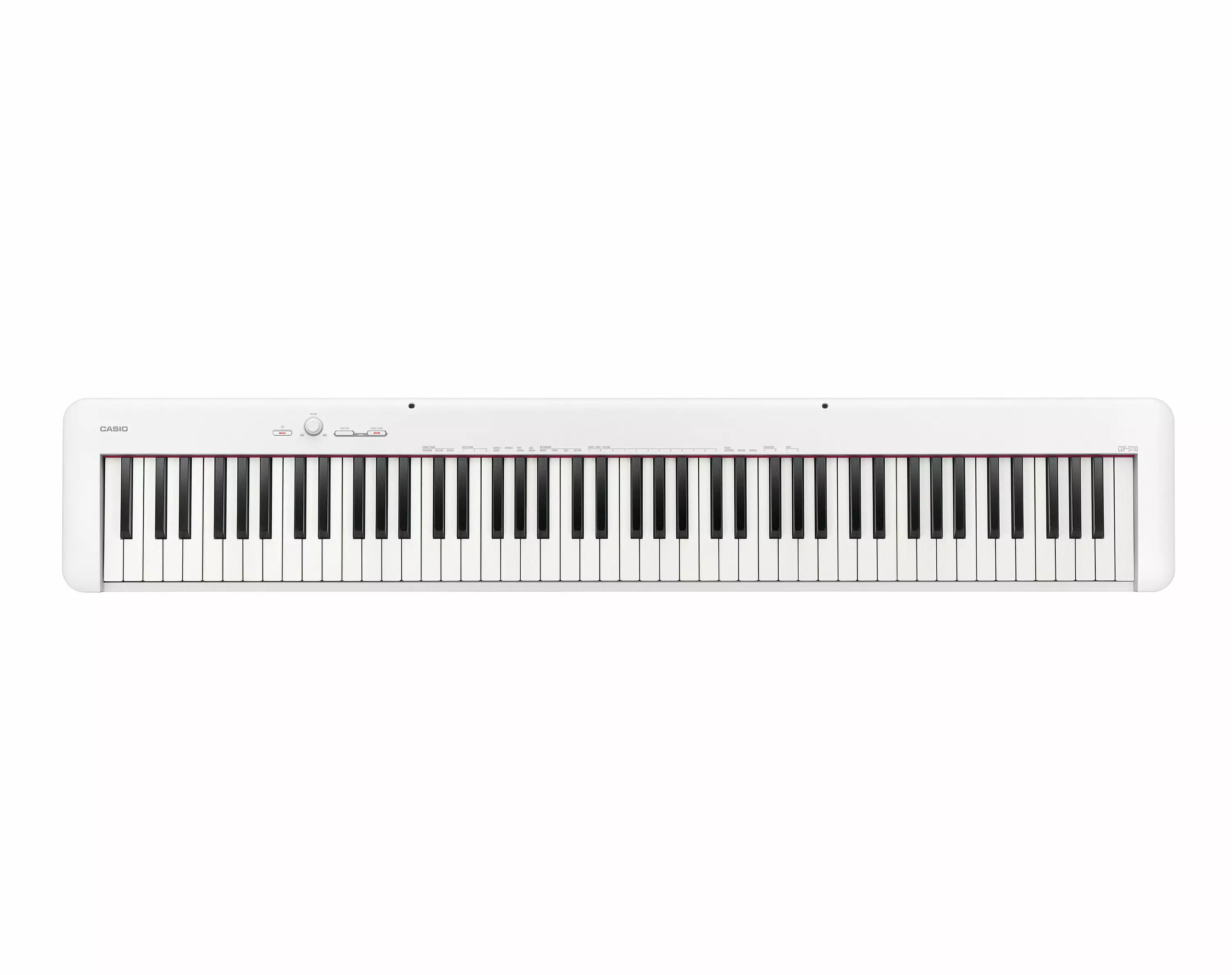 Casio CDP-S110WE digitaalipiano (569,00) - Väri: valkoinen - Casio CDP-S110BK on kompakti digitaalinen piano omilla kaiuttimillaan - Pianossa on 88 kosketinta ja se on varustettu täysimittaisella skaalautuvalla hammer action II -koskettimistolla - Casio CDP-S110 painaa vain 10,5 kg ja sen rungon syvyys on 232 mm, joten se on kevyt ja täydellinen kaikkiin tilanteisiin. - ''Slim Line'' -muotoilu - ''Scaled Hammer Action Keyboard II'' -vasarakoskettimisto - 64 äänen polyfonia´ - 10 soitinääntä - Reverb- ja Chorus -efekti - Sisäänrakennettu metronomi - Transponointi - USB to HOST (MIDI) - Kuuloke / Output -liitäntä - Audio-in -liitäntä - Sustain -pedaali (SP-3) - Nuottiteline - AC -virtalähde - 6 x AA -paristo mahdollisuus (max. 13 h alkaliraristoilla) - Teho 2 x 8 W - Kaiutinelementti 12 x 6 cm (2 kpl) - Mitat 132,2 (leveys), 23,2 (syvyys) ja 9,9 (korkeus) cm. - Paino 10,5 kg Design Slim Body Design with a Depth of Just 232 mm. Casio?s proprietary high-density mounting technology, with miniaturized components and a space-saving internal structure, is key to the slim body of this piano. Two color variations are available: black and white. The bold, monochromatic color scheme and minimalist design aesthetic together deliver a simple yet elegant piano experience.