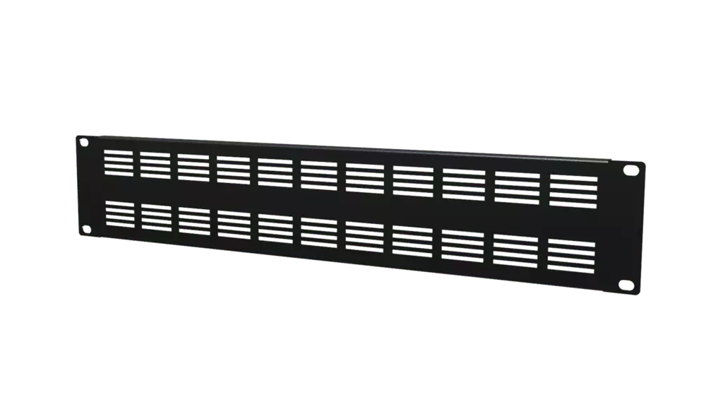 - Laadukas tuuletusaukoilla varustettu 2U 19" räkkipeitelevy