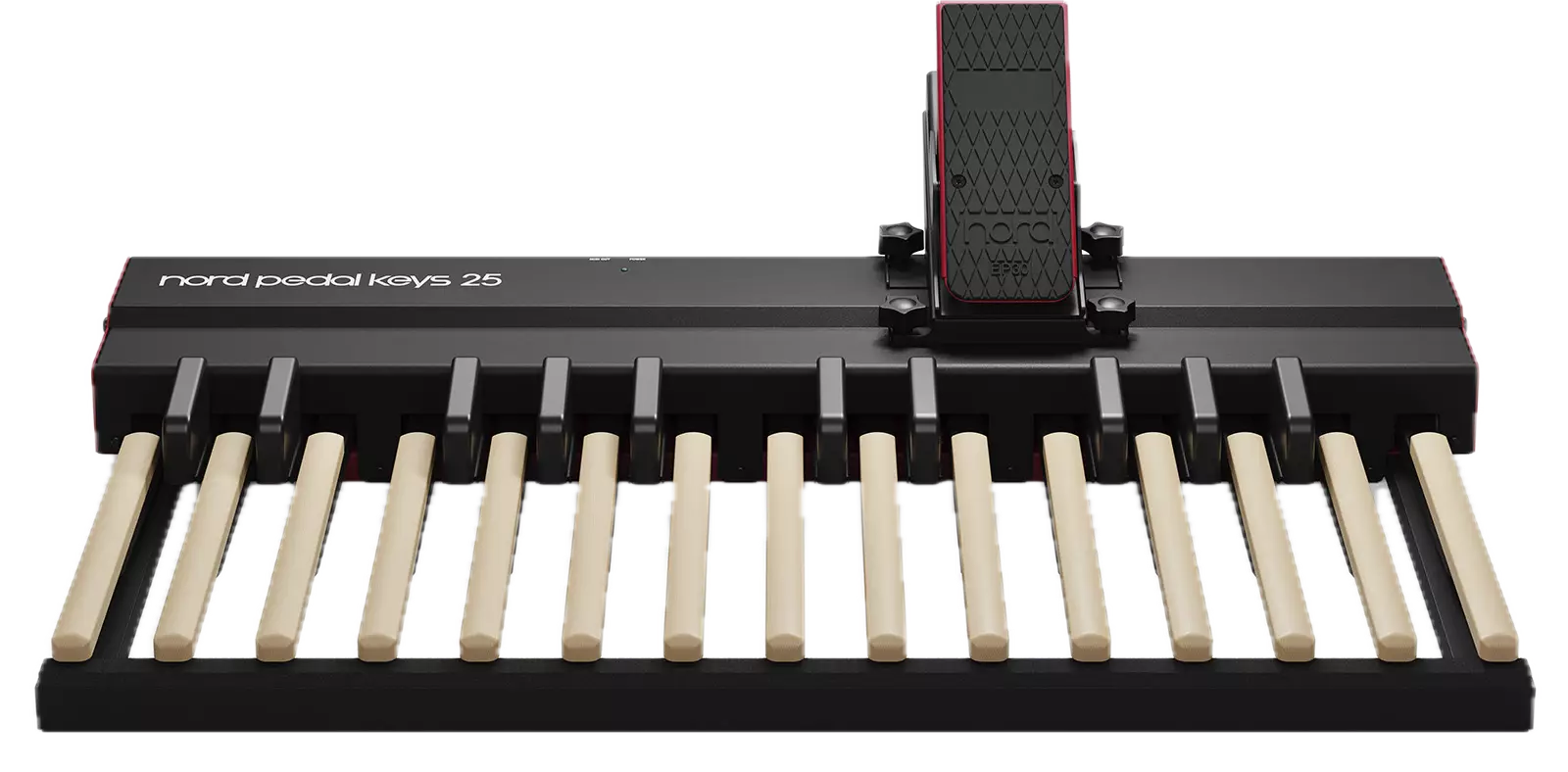 Uuden sukupolven MIDI-pedaalissamme on 25 puista kosketinta ja se sisältää Nord EP30 -swell-pedaalin, jossa on erillinen kiinnitysteline kätevää kiinnitystä varten.