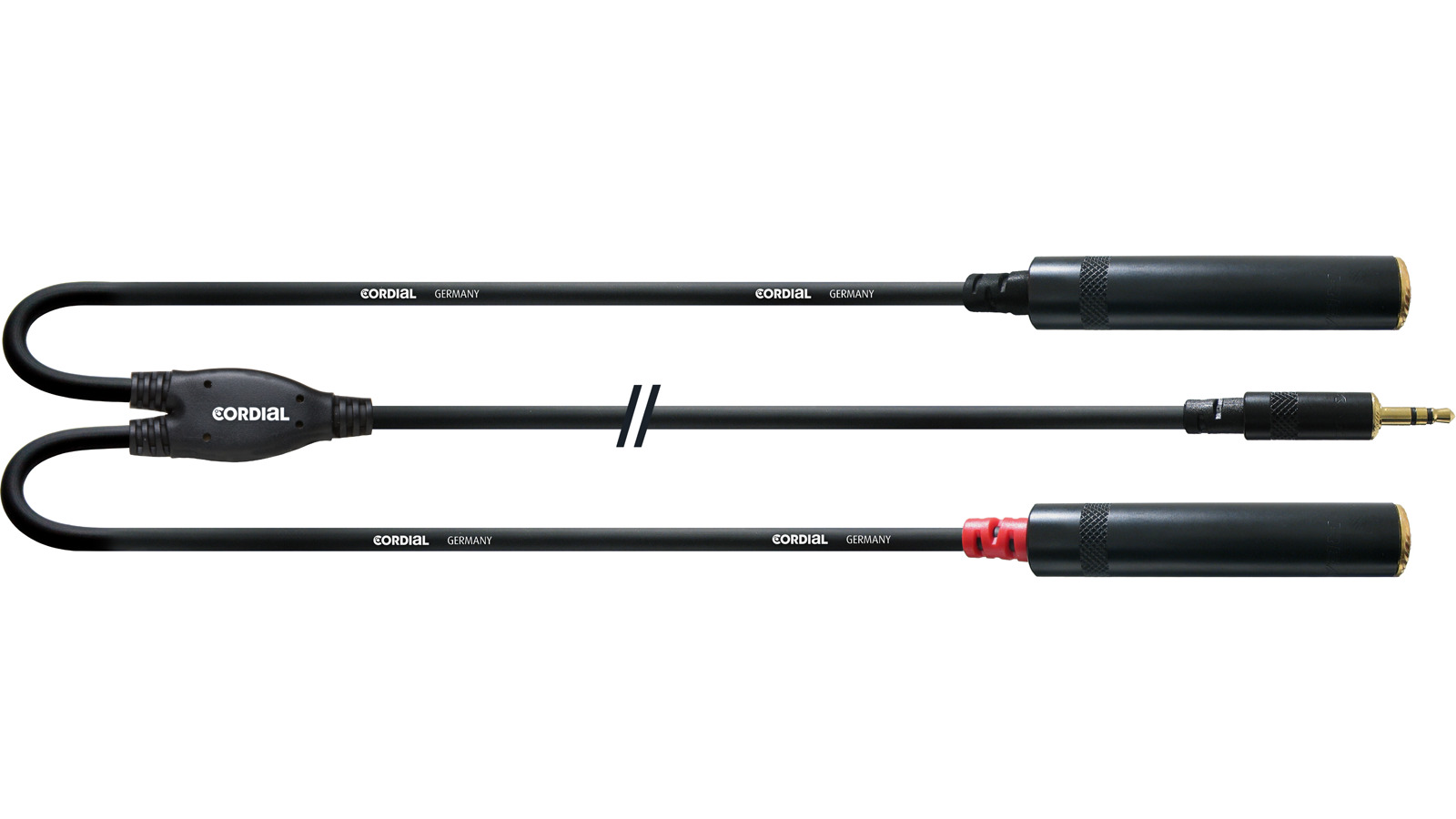 Laadukas y-haarakaapeli. 3,5 mm ministereoplugi - 2 x 6,3 mm TS monojakki, pituus 30 cm.