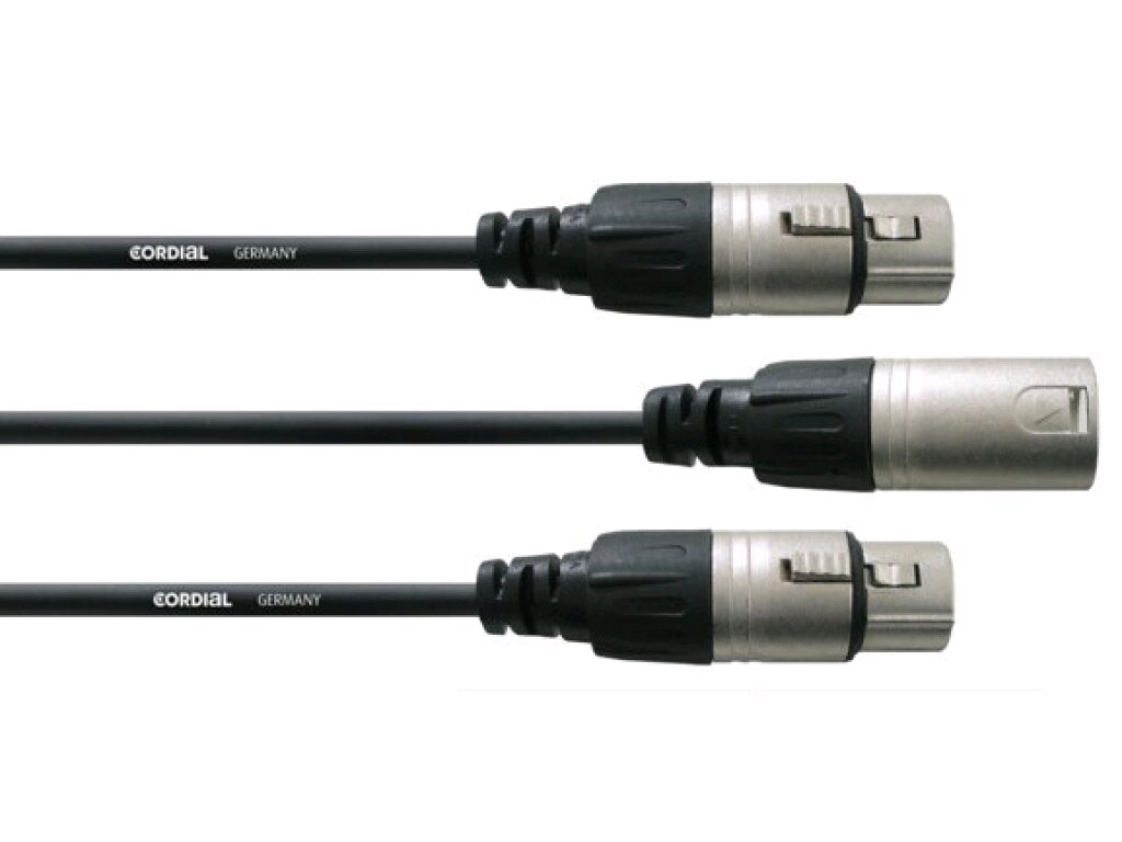 Cordial XLRu - 2x XLRn 0,3 m haarakaapeli. Soveltuu esim. siihen, kun yhteen mikrofonikanavaan pitäisi saada 2 mikrofonia.