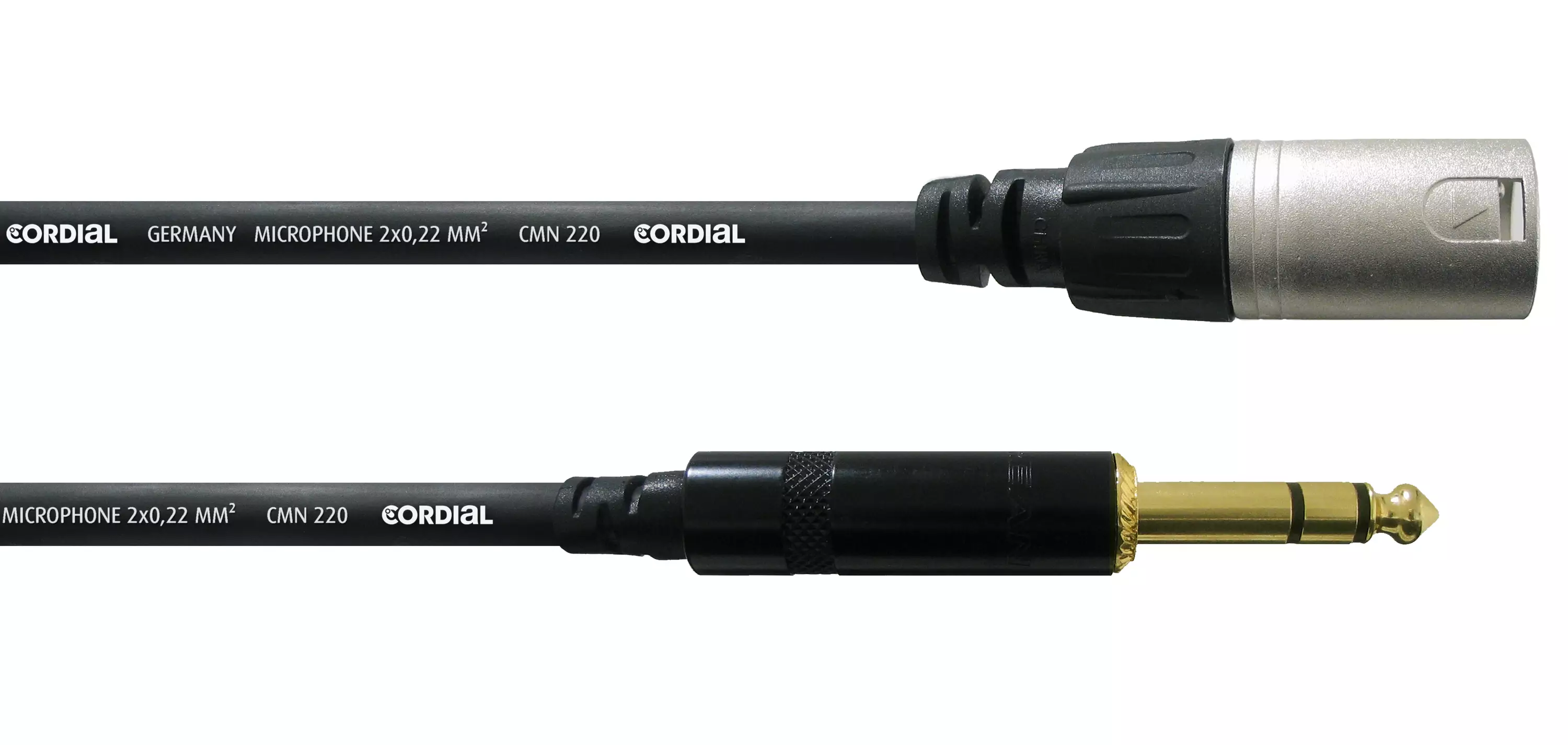 Laadukas Cordialin balansoitu linjakaapeli XLR uros - 6,3 mm TRS stereoplugi.