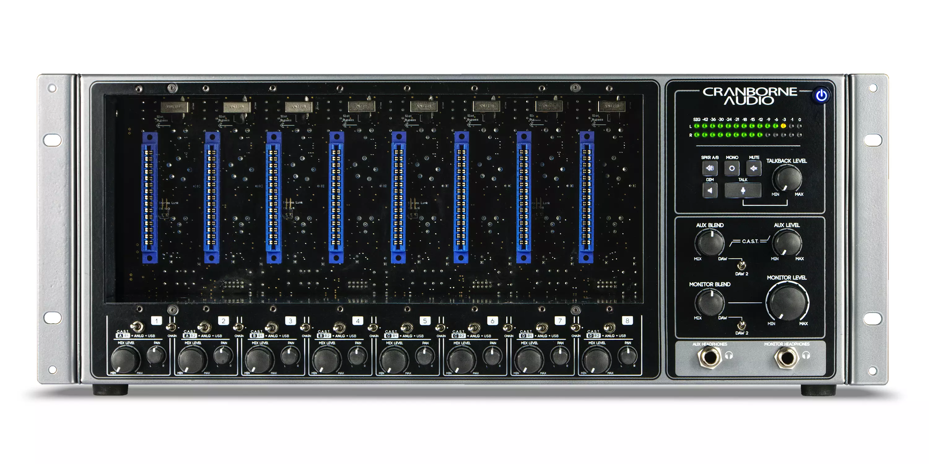 Cranborne audio 500R8 toimii digitaalisen ja analogisen signaalitien yhdistäjänä molempiin suuntiin. Kahdeksan muuten digitaalisen kanavan kokoaminen stereosummaksi analogipuolella on suosittu ratkaisu, ja 500R8 toimii siinä mainiosti. Siitä voi myös koota analogisen äänitystiskin, jossa joka kanavalohko on omanlaisensa, ja kuuntelu täysin vailla latenssia, kun se rakennetaan yksikön omiin aux-lähtöihin, joista se totta kai on summattavissa työasemalta tulevaan audioon.