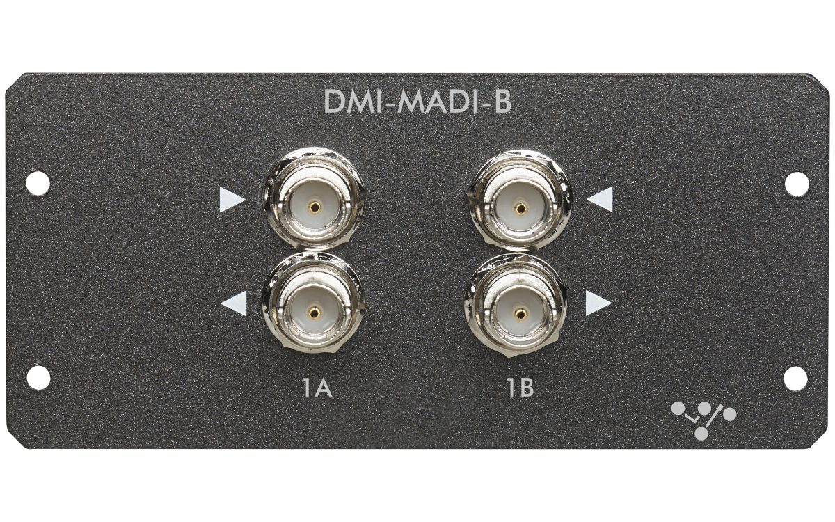 DiGiCo offers two MADI DMI cards, each with different connector types. Both the MADI-B (BNC) and the MADI-C (RJ45) cards can be used to connect up to 64 channels of audio in and out at both 48kHz and 96kHz. At 96kHz, the B connection must be connected to provide the full channel count.