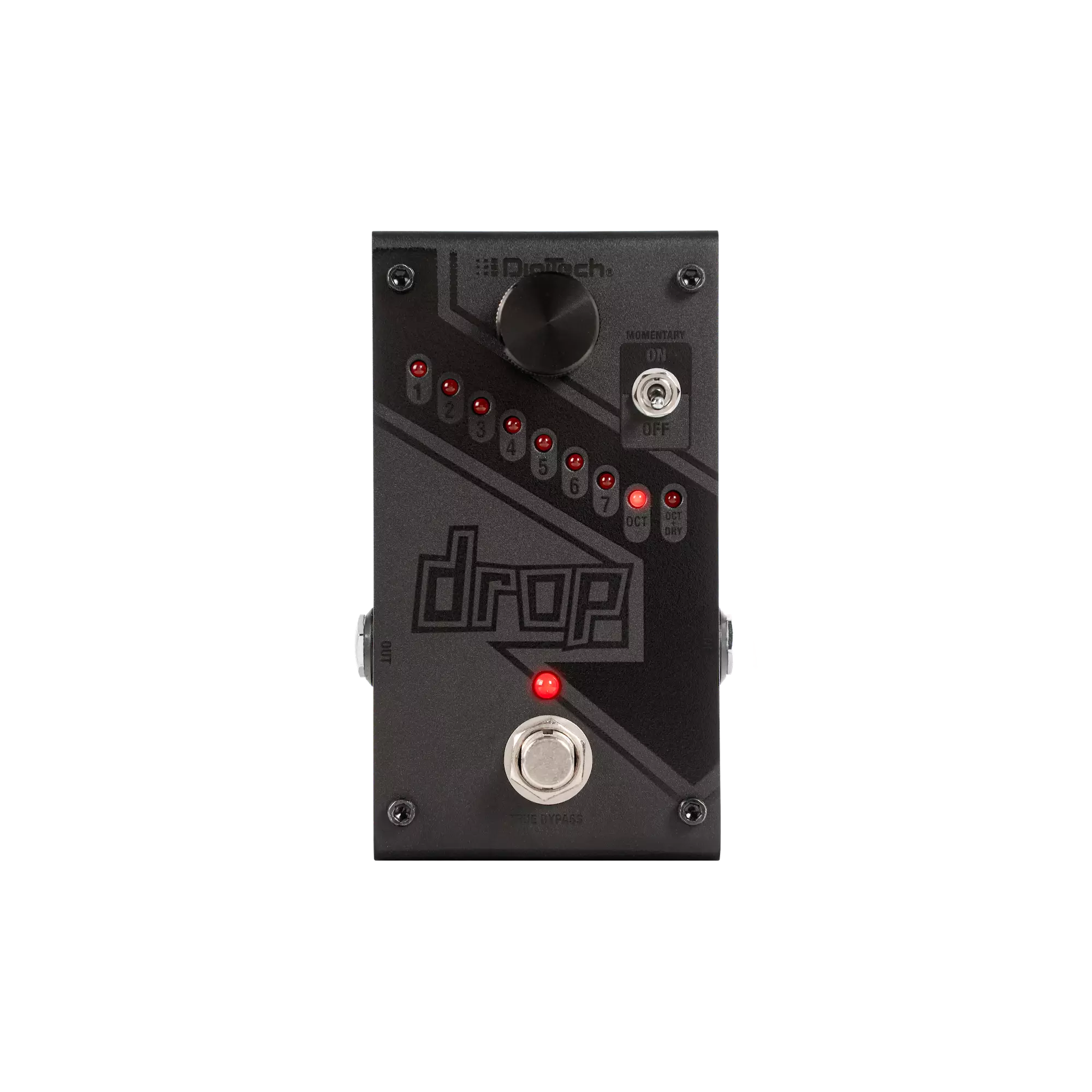DigiTech Drop on polyfoninen drop tune -pedaali, jonka avulla voit pudottaa viritystäsi yhdestä puolisävelestä aina oktaavin verran alaspäin. Pystyt soittamaan down-tuning-kappaleen ilman, että sinun tarvitsee vaihtaa kitaraa! Dropissa on myös momentary/latching-kytkin.