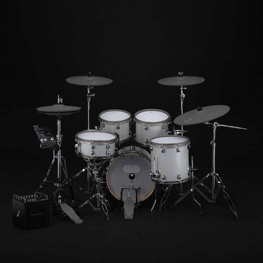 Perinteinen rumpusetti, jossa 5 rumpua ja 4 symbaalia.