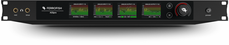 Sekä Ferrofish A32pro:hon että A32pro Dante:een on mahdutettu 1 U:n räkkikokoon 32 analogituloa ja 32 analogilähtöä täysin balansoiduilla DSub25-liittimillä.