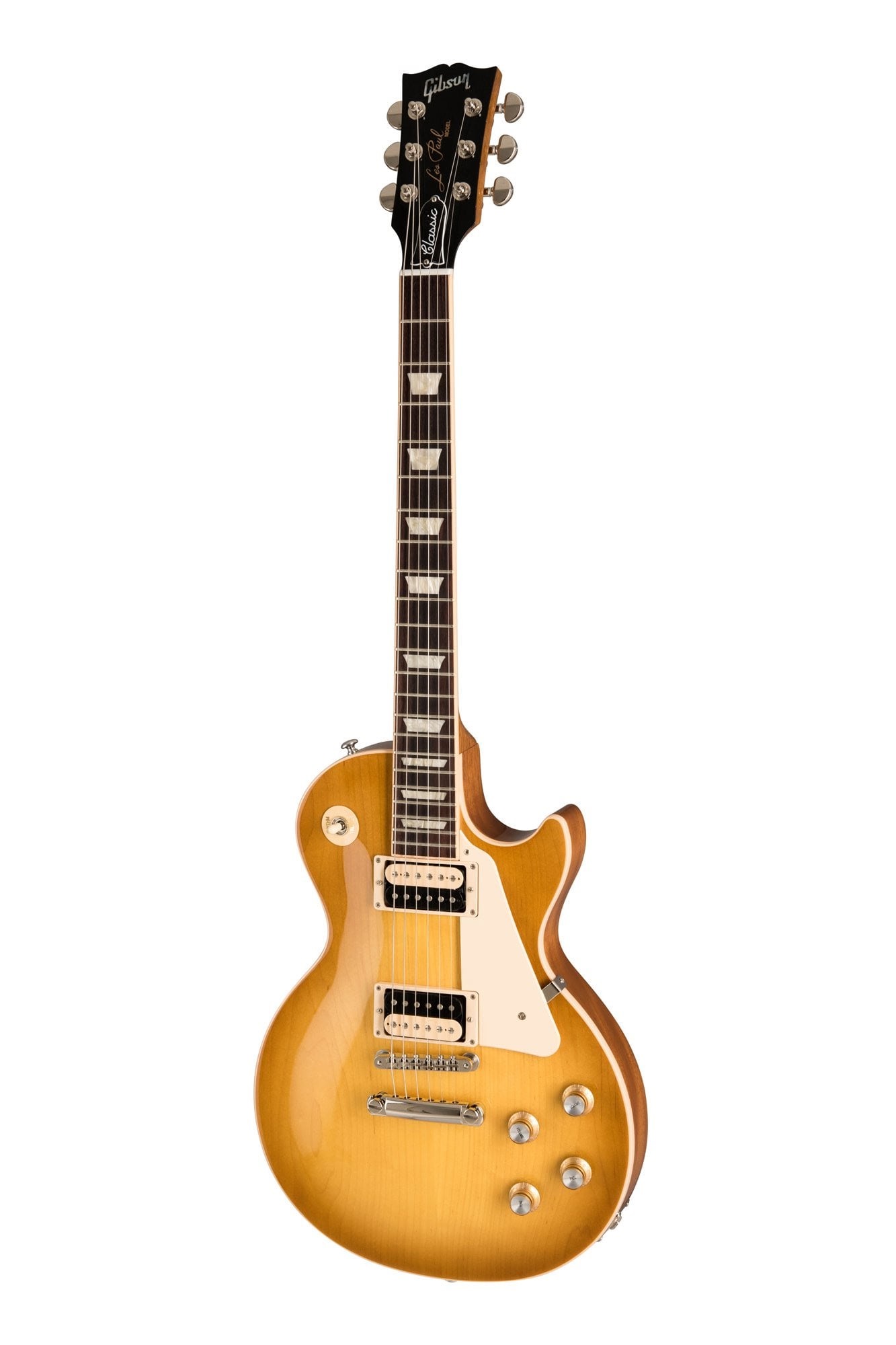 The Gibson Les Paul Classic combines the early 60's style Les Paul model with some functional and time-tested modifications. As expected, the LP Classic is crafted with a mahogany back and maple top coupled with a slim taper mahogany neck and bound, rosewood fingerboard. Burstbucker 61R & 61T zebra, open-coil pickups provide classic Gibson tones from the era with a bit of extra punch thanks to the open coils. The control assembly features 4 push-pull pots which provide choices of coil tapping, phase switching and pure bypassing for functional and versatile sonic variety.