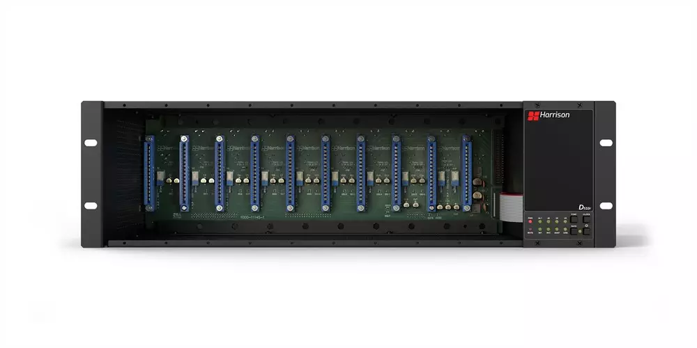 Harrison D510r, erittäin monipuolinen kymmenpaikkainen 500-sarjan räkkijärjestelmä, joka on laajennettavissa analogisella summausmikserillä (ei sisälly), Dante AoIP -liitäntä (ei sisälly) tai USB-liitäntävaihtoehdot (ei sisälly).