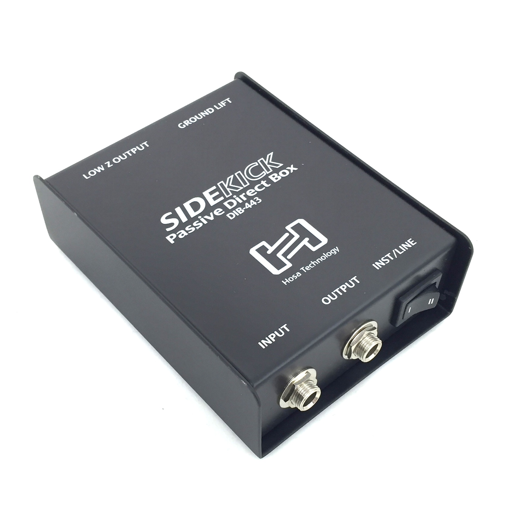 Hosa DIB-443 Sidekick DI-boxi on pasiivisen rakenteensa vuoksi erittäin hiljainen eikä kohise. Maan erotuskytkin ja tason valinta löytyvät.