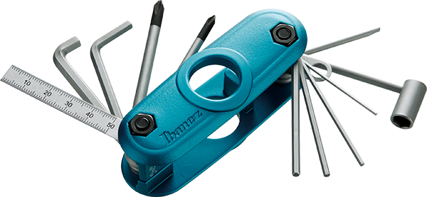 Kätevä multi-tool ratkaisu huoltotöihin. Multi-tool sisältää kaikki tärkeimmät avaimet esimerkiksi jokaikiseen Ibanez-kitaraan. Avaimet ovat millimittaisia, joten ne eivät sovi amerikkalaisille kitaroille.