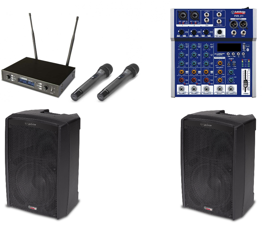 Karaoke Ultimate 2 on täydellinen paketti vaativalle harrastajalle ja karaokebaarille joka haluaa tarjota asiakkaille Laadukkaat ja Kestävät laitteet. Miltä kuulostaisi paketti jossa on parhaat mahdolliset kaiuttimet, hyvä monikanavainen mikseri ja parhaat Audio Design Pro mikit? Kun olet vaativa laulaja ja vaadit laitteistolta vain parasta niin tässä on oikea paketti. Karaoke Ultimate 2:ssa on kolmella kanavalla varustettu Italialainen Audio Design Pro mikseri, kaksi 12" Digi Live Plus aktiivikaiutinta ja kaksi langatonta mikkiä. Karaoke Ultimate 2 riittää isoihin karaokebaareihin ja sopii myös koteihin kun kaipaat kunnolla laadukasta ääntä. Karaoke Ultimate 2 mikserissä on kanavia yhteensä kolme joten tilaa lisälaulajille löytyy. Voitte myös liittää tähän mikseriin esim.soittimia kuten kitaran tai kosketinsoittimen. Tässä teillä on karaokelaitteiston lisäksi myös oiva keikkasetti pikkubändille.