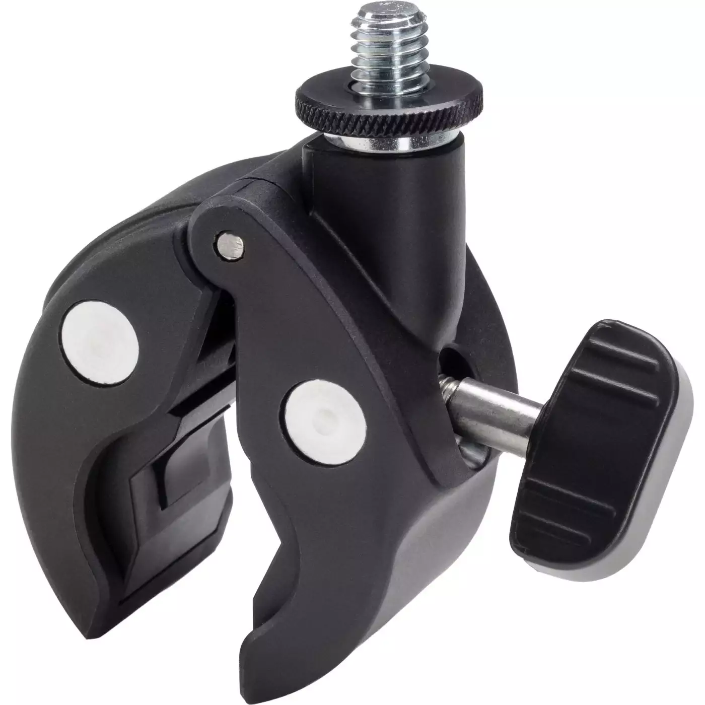 Pieni, vankka ja monikäyttöinen yleispidike studioon ja esiintymislavoille. Pidikkeessä on 3/8” kierre sekä kiinnitysleuka, joka kiinnittyy 10mm-30mm paksuihin jalustaputkiin tai tasoihin.