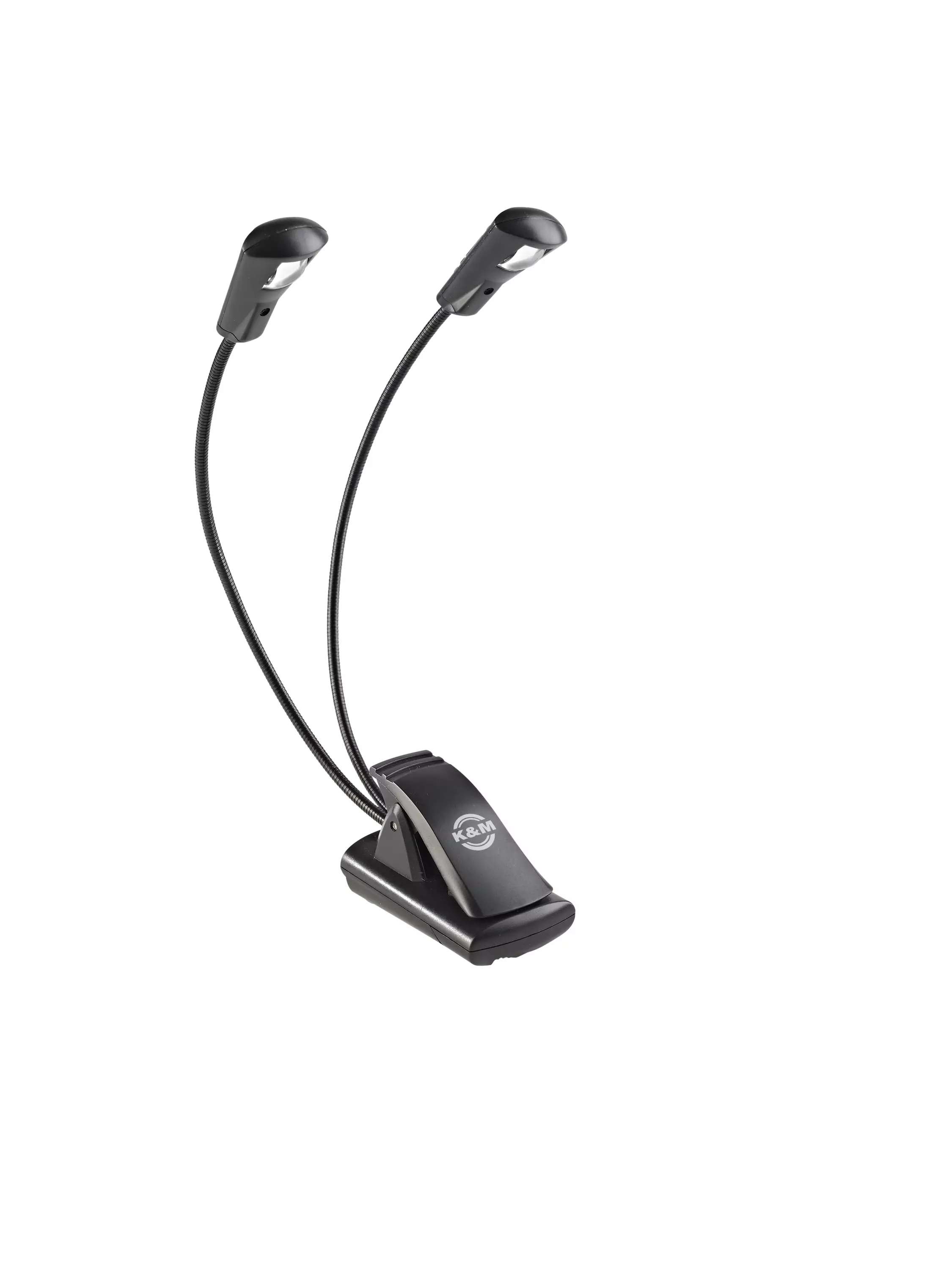 Compact and versatile dual-headed light with 2 flexible goosenecks and with one durable LED on each head. The 2 LEDs can be switched on individually and are rated for 100,000 hours. The practical and extra-wide clip (up to 25 mm) attaches to music desks, table tops etc. It can also be used as a standing light. The goosenecks are easy and compact to fold. Includes 3 batteries (1.5 V AAA) with a battery life of up to 20 hours.