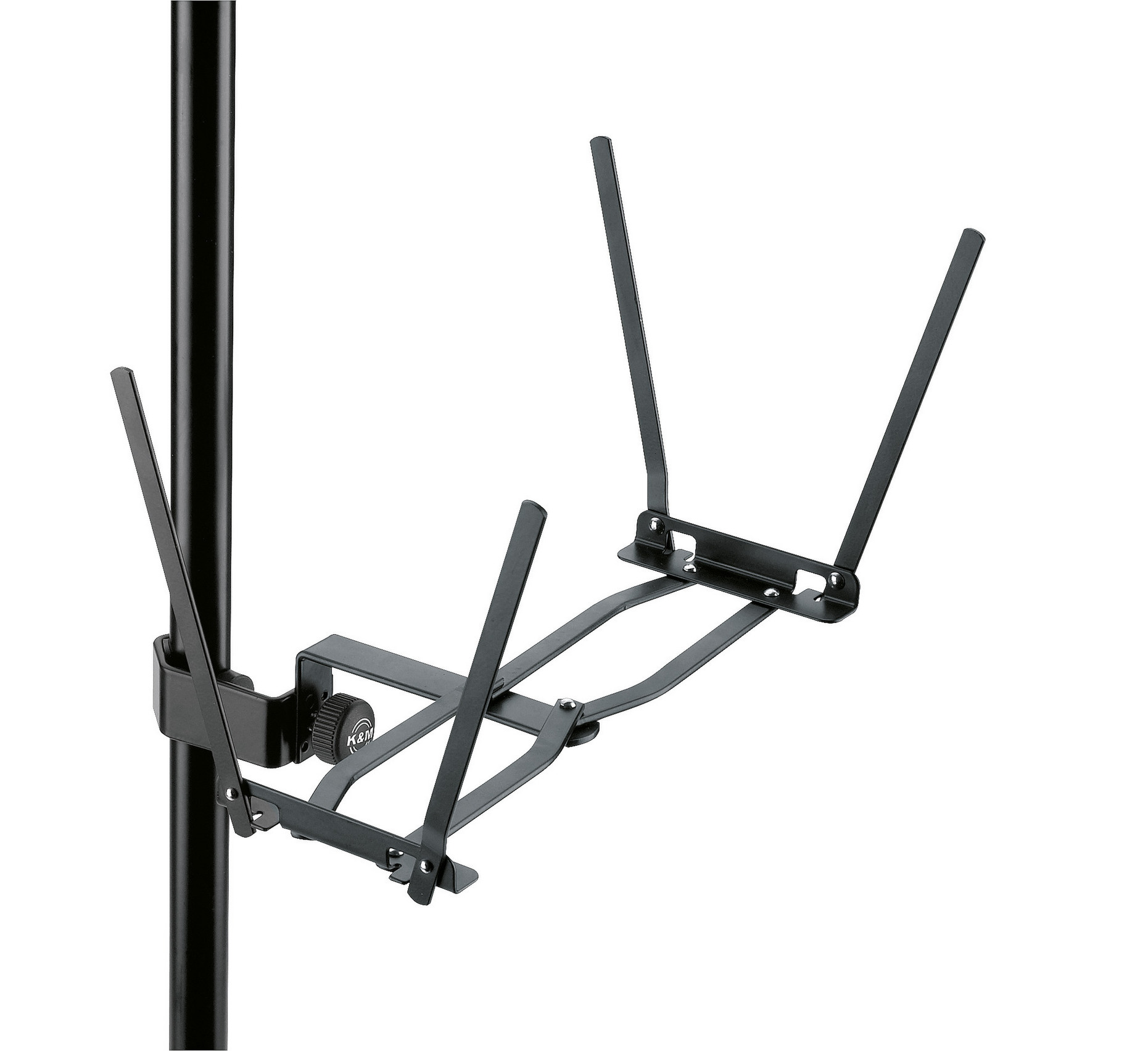 Mikrofonitelineeseen tai muuhun pystyputkeen kiinnitettävä nuottiteline. Kompakti koko, kasaantaittuva.