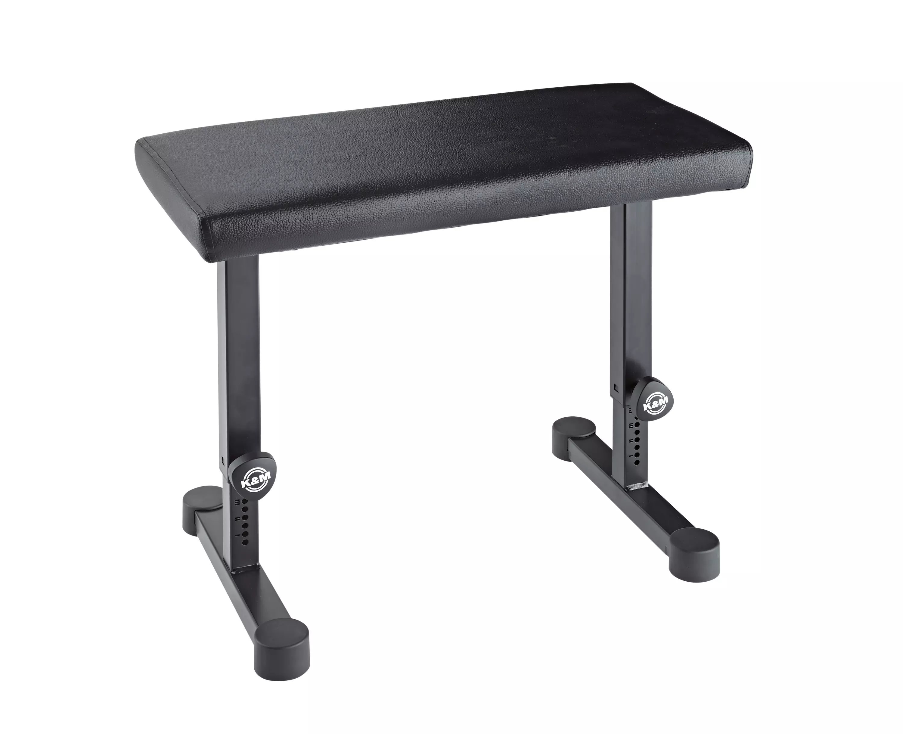 Its compact steel tubing construction and large round foot end caps make this attractive bench significantly more stable. Excellent sitting comfort is achieved by an attractive skai leather seat covering for enjoyable and relaxed keyboard playing. The two sided spring-loaded locking screws make precision height adjustment easy. There is an engraved height scale to find your personal setting with ease.