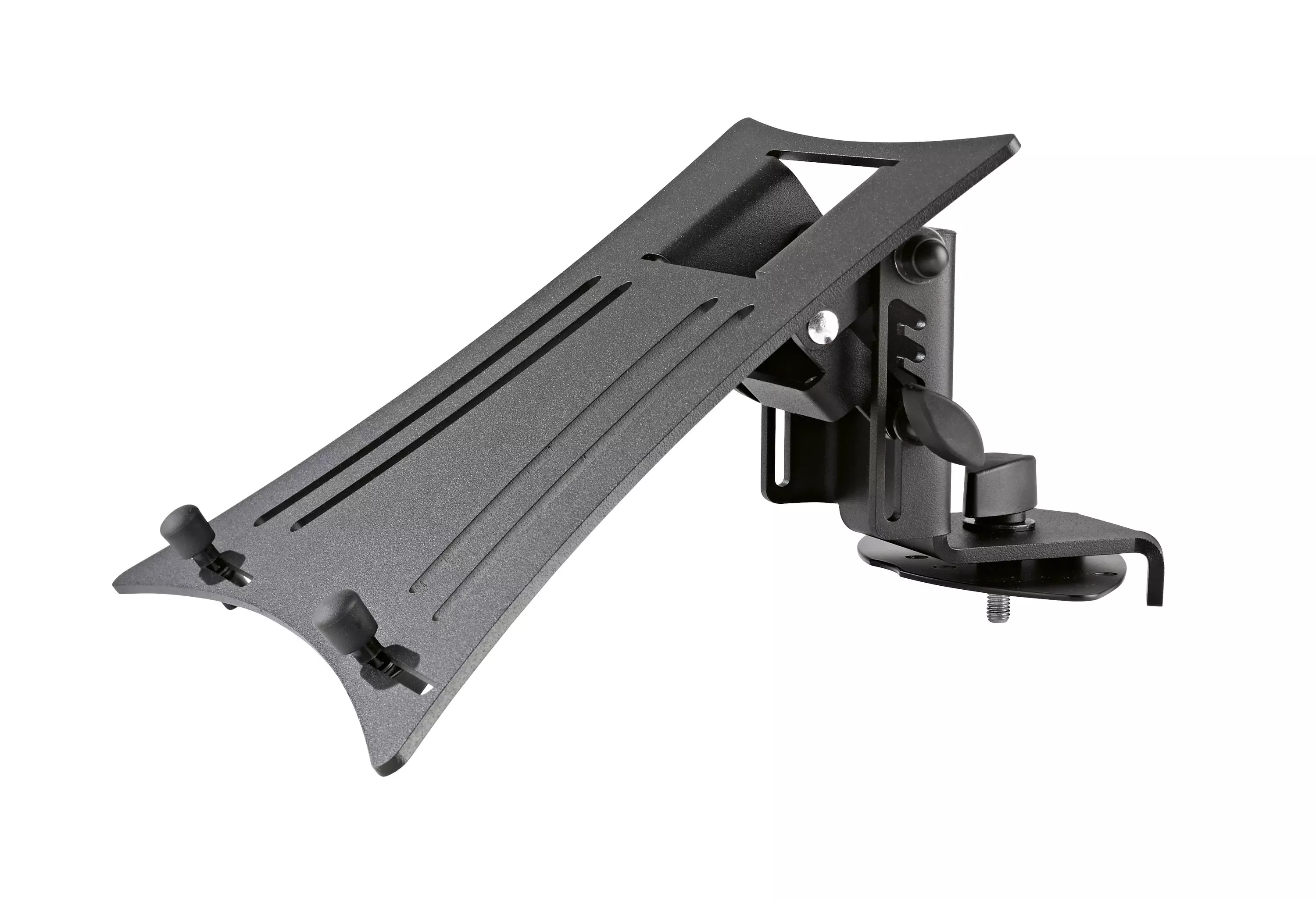 Houkutteleva kannettavan tietokoneen teline Spider Prolle ja Baby Spider Prolle. Kannettavan tietokoneen tuki kiinnitetään kosketinsoitintelineen Spider Pro tai Baby Spider Pro yläpäähän siipimutterilla ja kiinnityslevyllä. Alumiininen hylly voidaan säätää vaakasuoraan tai kallistaa kolmeen asentoon. Yksilöllisesti säädettävät rajoitintapit kumikorkilla mahdollistavat kaikkien yleisten kannettavien tietokoneiden, mikserien jne. käytön.