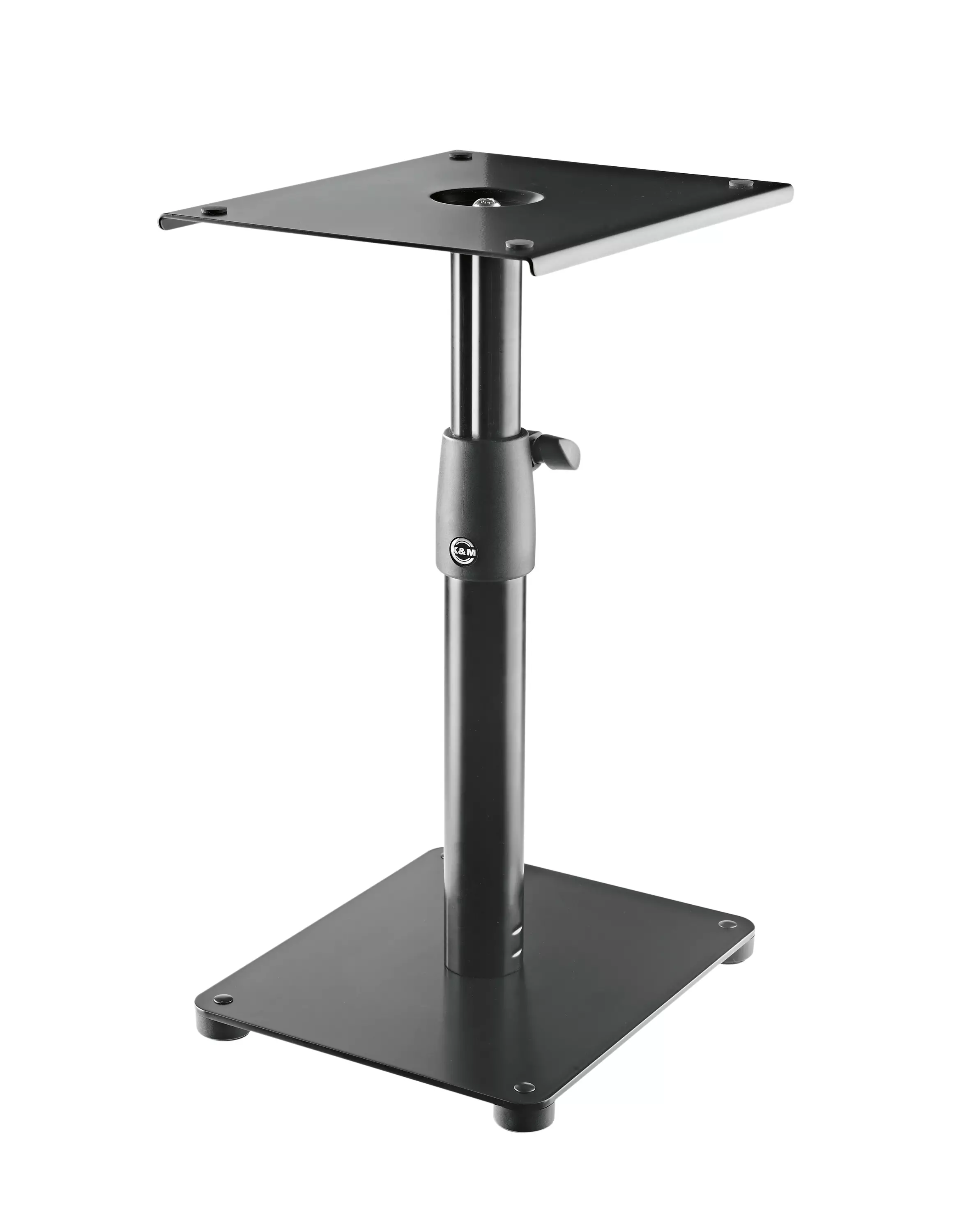 Korkeussäädettävä pöytäteline studiomonitoreille. Korkeus: 350 - 500 mm, 6 eri tasoa.