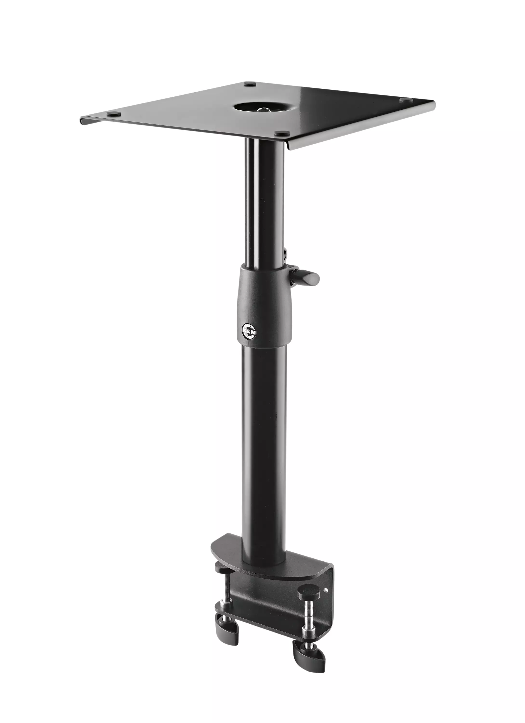 Korkeussäädettävä kaiutinteline pöytäkiinnikkeellä studiomonitoreille. Kiinteä metallirakenne suurella tukilevyllä (205 x 245 mm) soveltuu laajalle valikoimalle kaiuttimia.