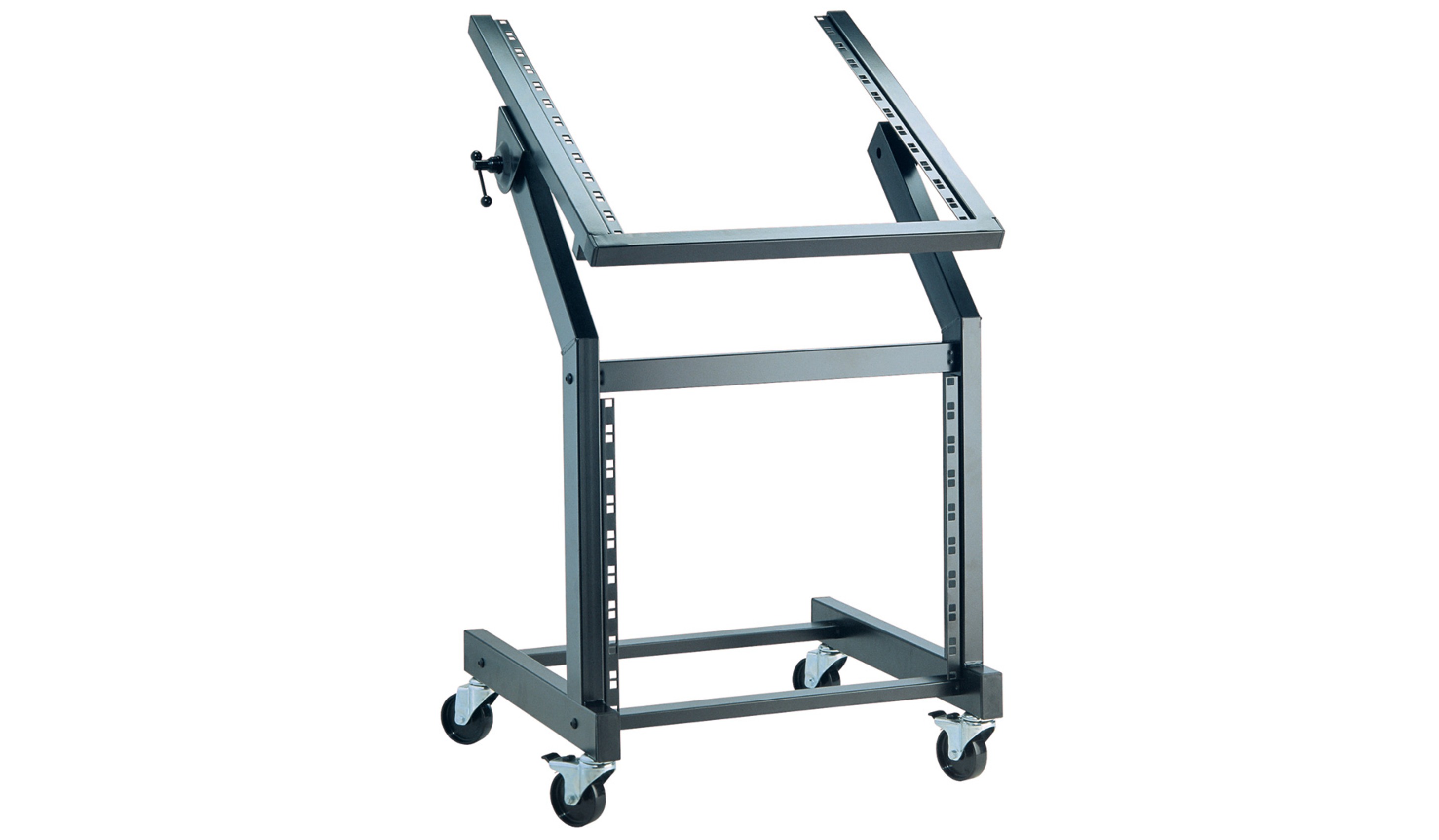 Special features: four casters, two of them locking; Cage nuts M5 and locking screws M5 x 16 (32 pieces) are included; angle adjustable to 45°; heavy-duty construction