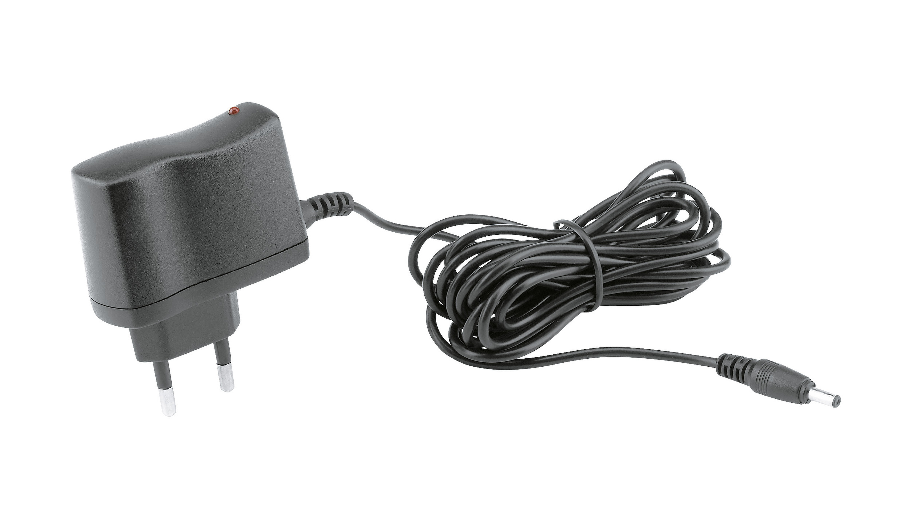 AC adapter for Germany and most European countries. Input 230V AC. Output 4V DC. With jack connector 3.5 mm. Length of cable 3 m.