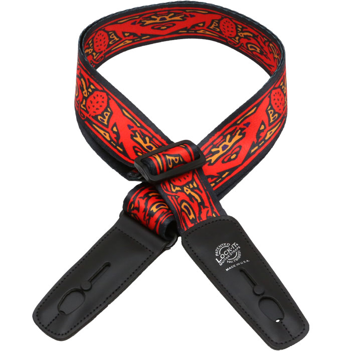 Lock-It Straps artist series by Bob Masse who has been making original rock posters influenced by the folk and rock music scene in San Francisco and Los Angeles in the 1960's and on. All straps are 2" wide and adorned with the patented and brilliant Lock-It strap locking system. No Guitar mods and a minimalist design sewn into a top class leather end. Straps extend to an extra long 62" in max length.