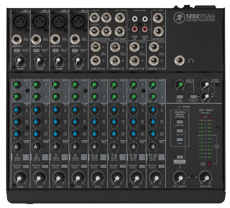 - 12-kanavainen Mackien mikseri Onyx etuasteilla