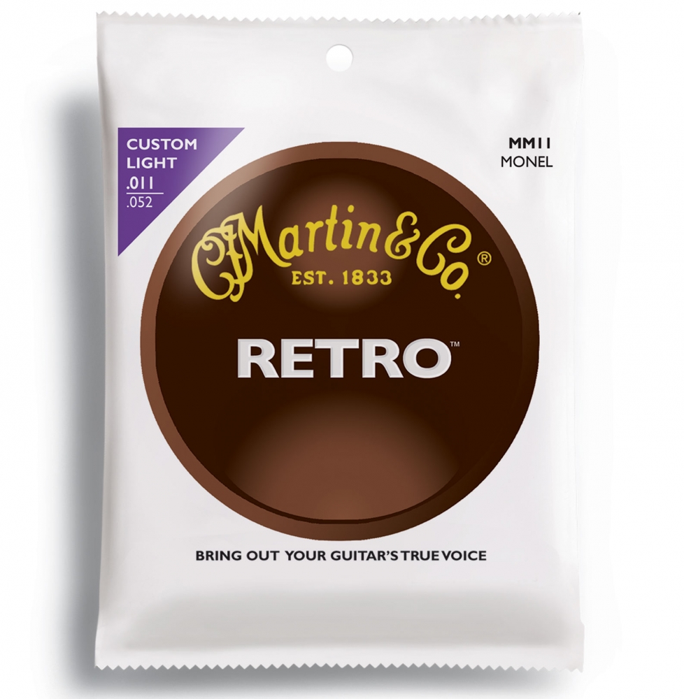 Martin Retro -akustisen kitaran kielet on valmistettu pitkäikäisestä patentoidusta nikkelipohjaisesta seossekoituksesta, joka pehmenee nopeasti lämpimäksi vintage-sävyksi, joka tuo esiin kitarasi ainutlaatuiset, puumaiset äänet.