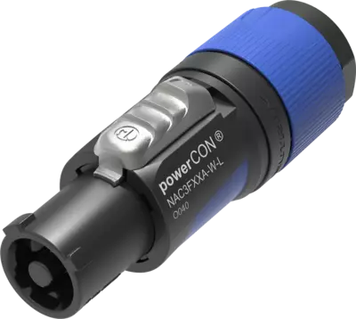 The powerCON FXXA/FXXB is a single phase (3 conductor) lockable power connector with Circuit Breaking Capability when mated with powerCON XX Series receptacles.