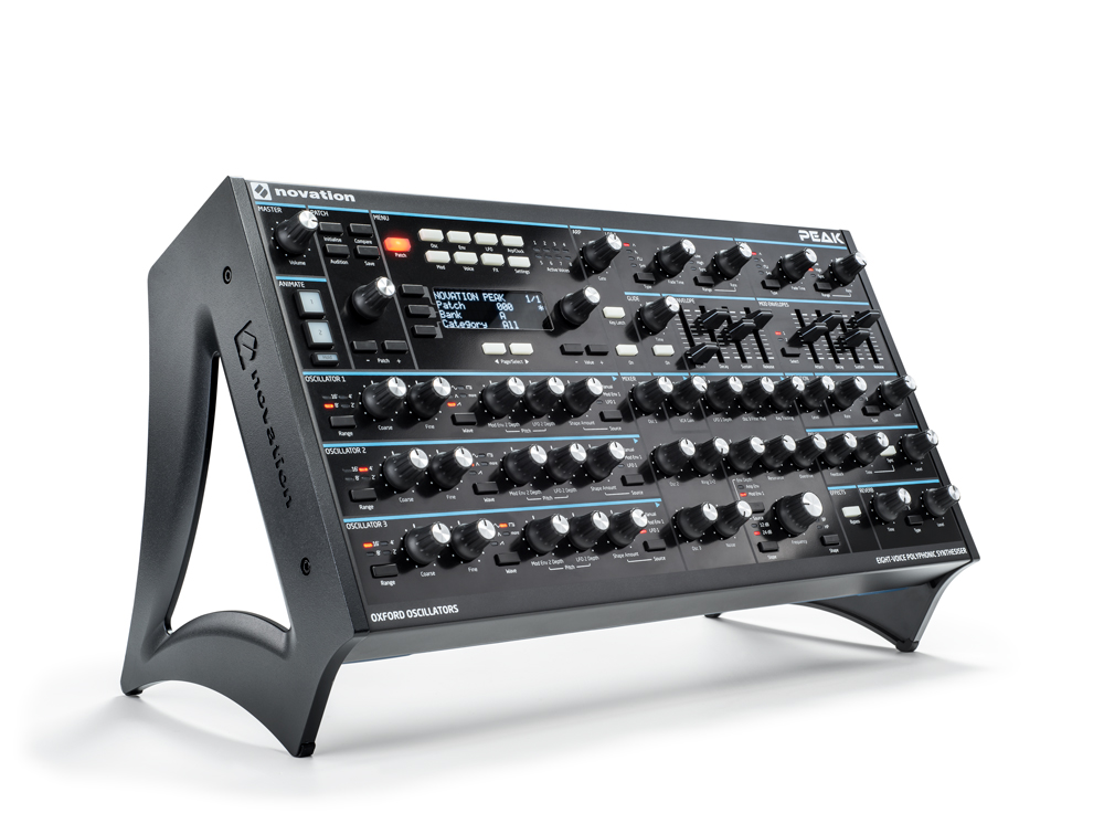 Alumiininen pöytäteline Novation Peak -syntetisaattorille.