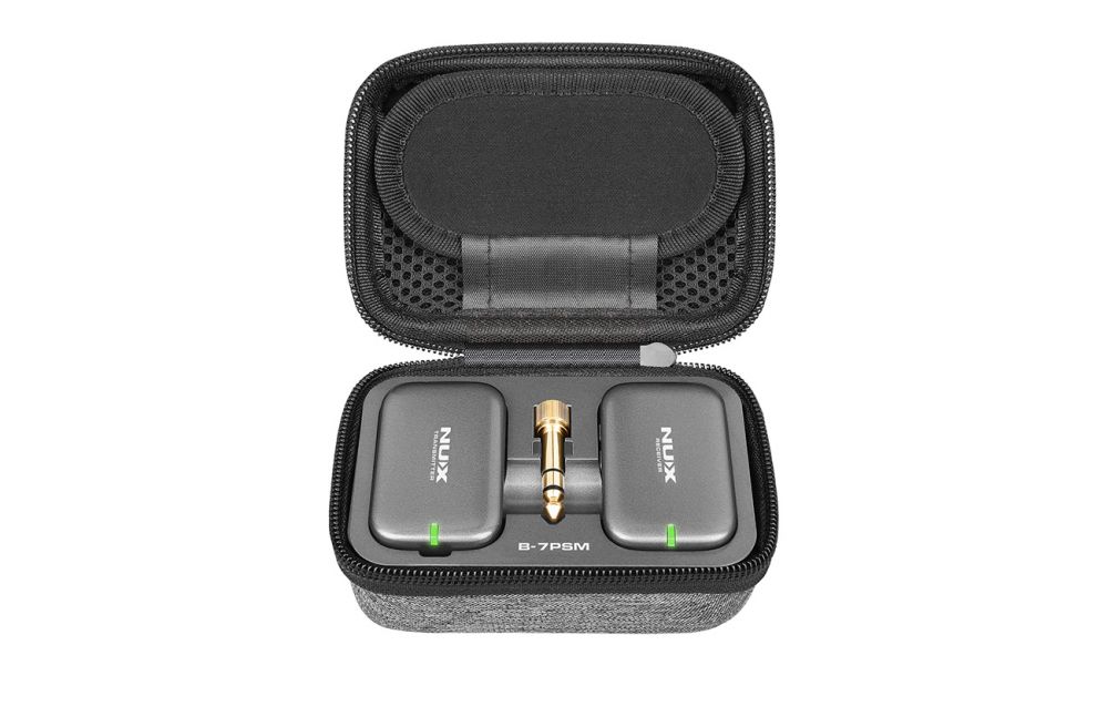 - NUX B-7PSM oN 5,8 GHz:n langaton korvamonitorijärjestelmä, joka koostuu lähettimestä ja vastaanottimesta sekä latauskotelosta