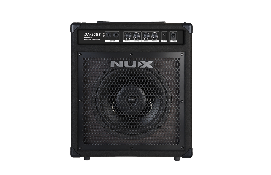 NUX DA30BT on monitori joka potkii kunnolla! Siinä on 30W tehoa ja 10" kolmitie elementti joka toistaa matalimmatkin äänet vaivatta. Tämä vahvistin on suunniteltu nimenomaan sähkörumpujen äänentoistoksi mutta se toimii myös esim. basson kanssa, keyboardin kanssa tai perinteisenä kulmamonitorina. Voit pitää sitä pystyssä tai asettaa sen kulma-asentoon. Kanavia on kaksi ja molemmille omat volumesäätimet. Voit siit liittää siihen samaan aikaan esim. rummut ja kitaran. Etupaneelissa on lisäksi bass ja treble-säätimet sekä CD-IN-liitäntä esim. kännykkää tai CD-soitinta varten jolloin voit jammailla mielibiisiesi tahdissa. Erinomainen kaveri mille tahansa sähkörummuille!