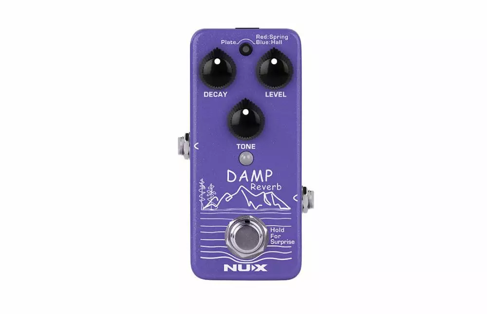 DAMP Reverb (NRV-3) on mini kaiku pedaali, jossa on 3 eri kaikutyyppiä, kuten Plate, Spring ja Hall. Voit vaihtaa tyyppejä napauttamalla kytkintä.