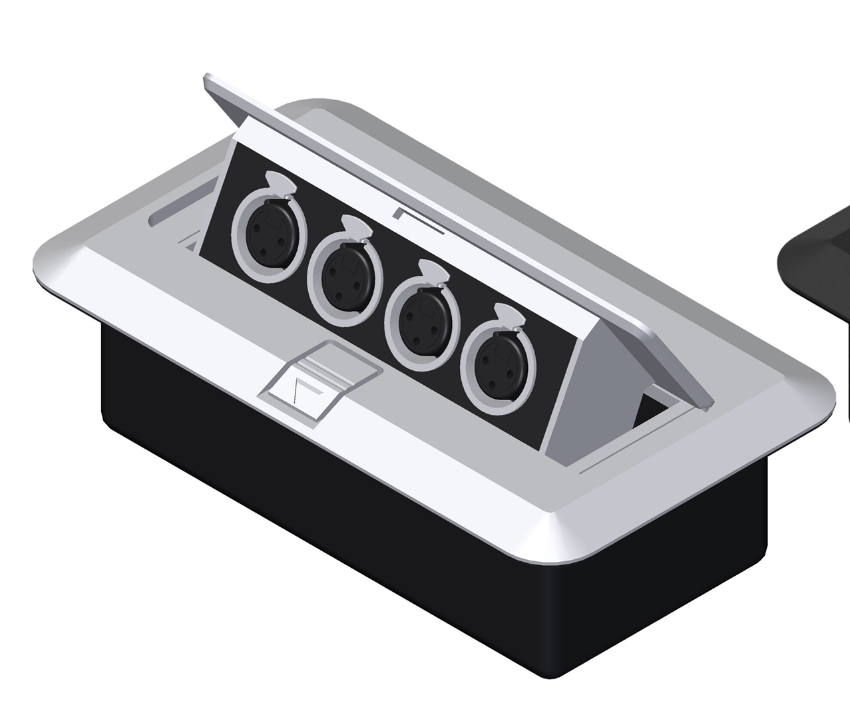 4 x XLRF Product information The Procab connection boxes are a good solution for A/V applications where several audio or data connections are needed to be made in an easy and durable way. These boxes can be used on stage, in board rooms, etc and provide a beautiful solution for multiple connections. General Specifications Usable connector depth : 25 mm 4 x XLR Female connectors :