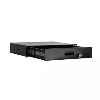 Lukittava 19" - 2U - teräsrakenteinen metallinen räkkilaatikko teleskooppisilla sinkkipinnoitetuilla liukukiskoilla.