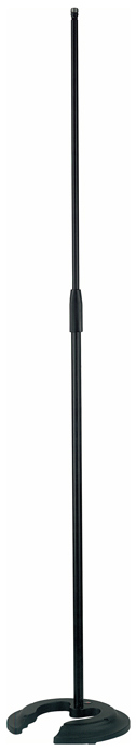 Professional space-saving straight microphone stand with heavy stackable cast iron base and nylon clutch-style height-adjustment.