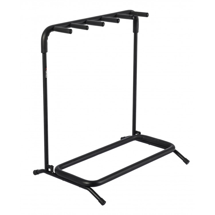 Laadukas taittuva lattiakitarateline viidelle kitaralle tai bassolle.