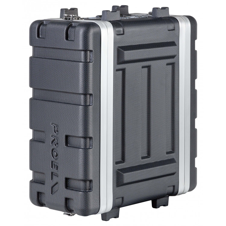 19' rack case - 4U - made of 'FORCE Polyethylene'. This item is part of the new series of products that includes a wide range of professional cases dedicated to the field of musical instruments and stage equipment and is an integral part of PROEL brand products. The main feature of this series is represented by the 'mix' of components and polymers used, including the carbon fibre, for the realization of the panels used in the construction of the ABS cases. The result of all this is the 'FORCE Polyethylene' which combines excellent resistance to chemicals and weathering, and is at the same time very light and durable over time.