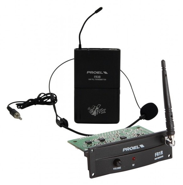 taskulähetin ( Proel FR1B ) ja Proel pääpantamikrofoni