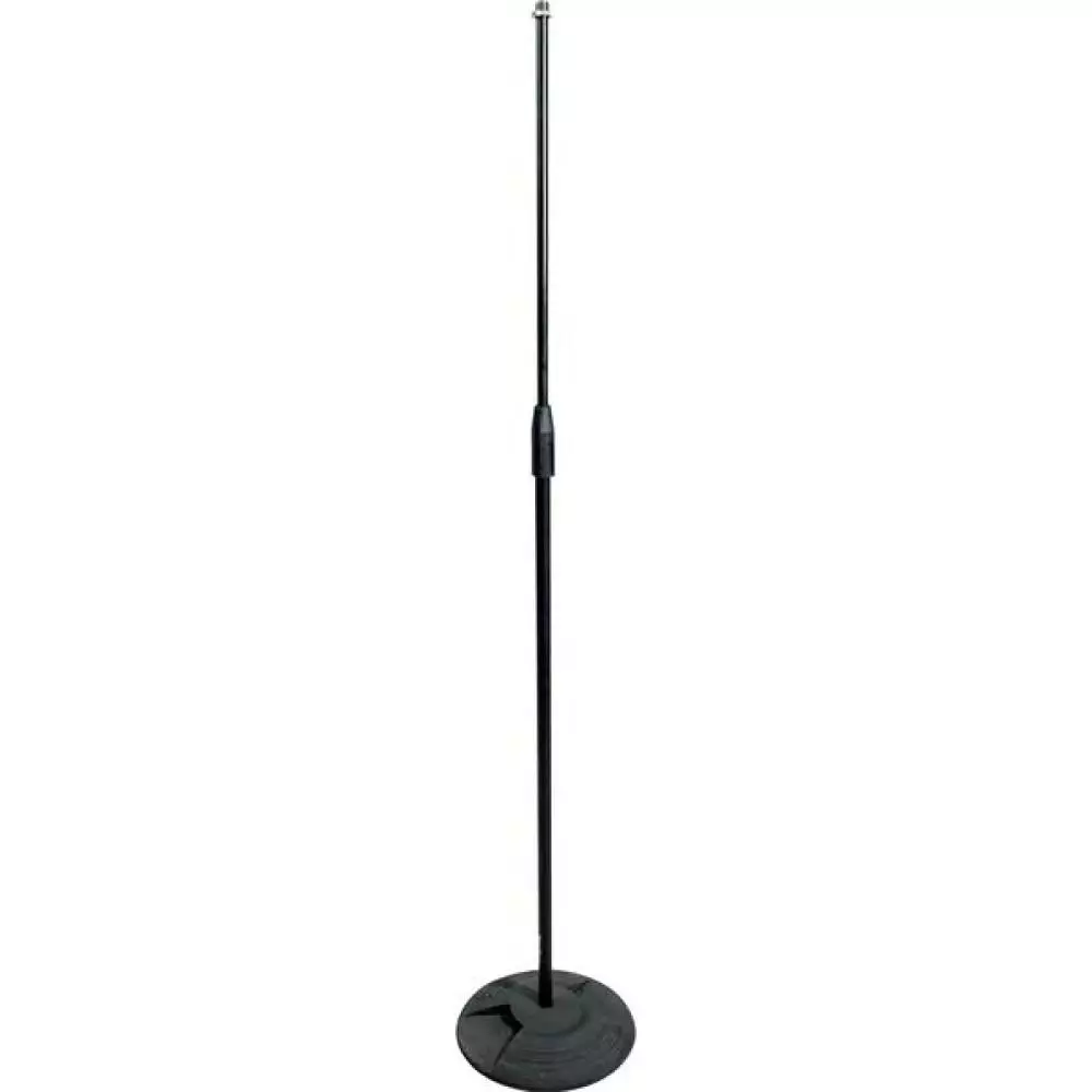 Ammattimainen suora mikrofoniteline, jossa tärinänvaimennettu kumirengas, valurautainen jalusta ja nailoninen kytkimen muotoinen korkeussäätö. 950 - 1650 mm