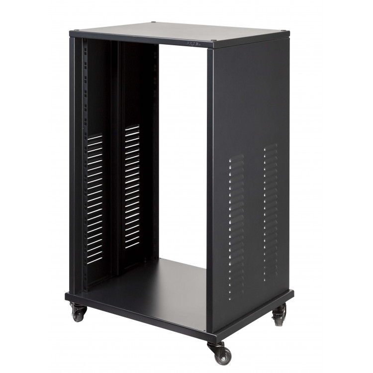 Ammattikäyttöön ja studioihin suunniteltu laadukas pyörällinen 19" räkkikehikko, jonka korkeus on 18 unittia.