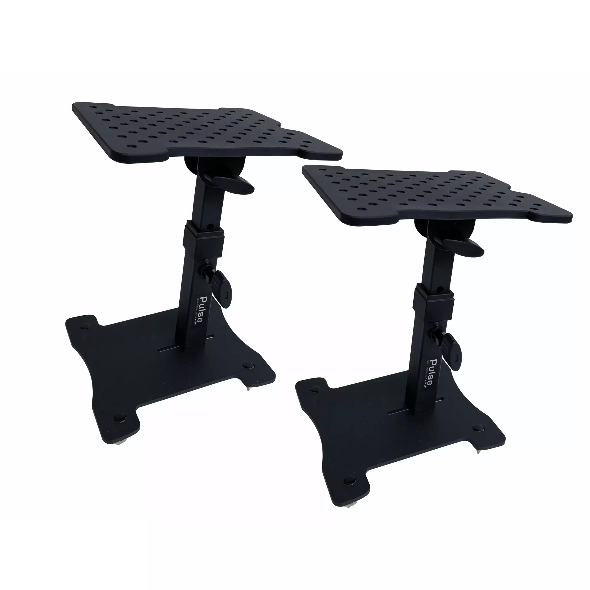 Pulse MS075 pöytätasolle suunnitellut kaiutintelineet mahdollistavat studiomonitorien tarkan suuntamisen.