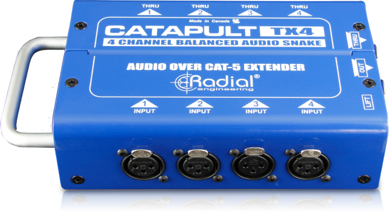 4-kanavainen Cat5/XLR passiivinen analoginen audiosiirtäjä/vastaanotin mikrofoni- ja linjatason signaaleille.