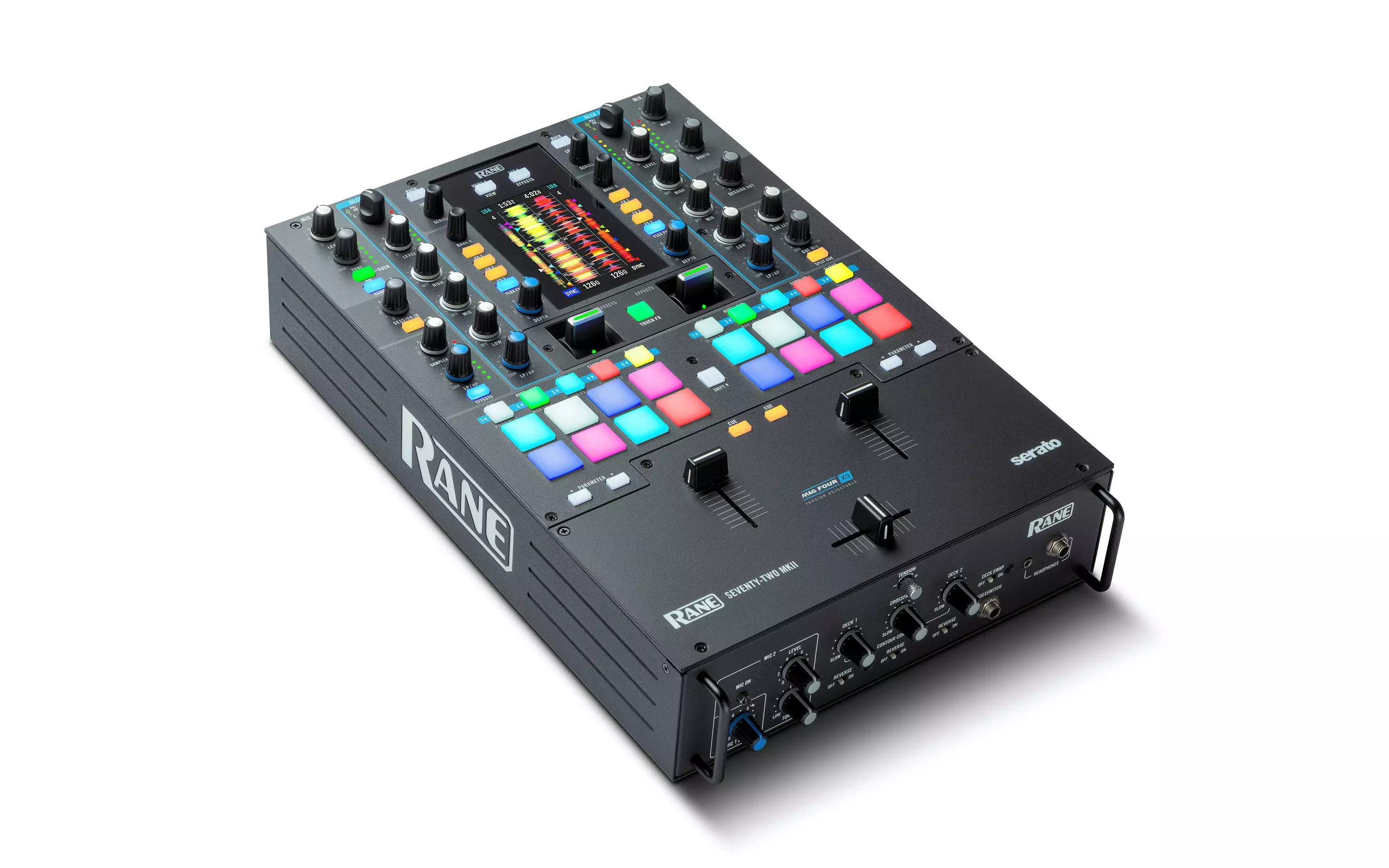 RANE SEVENTY-TWO MKII:n avulla jopa kaksi DJtä voi kytkeä koneensa laitteen sisäiseen Seratoon samanaikaisesti. Uudella 4,3 tuuman värinäytöllisellä kosketusnäyttöllä SEVENTY-TWO MKII ei ainoastaan näytä Seraton aaltomuotoja ja cue pointteja, vaan toimii myös Flex FX ja Serato efektien interaktiivisena käyttöalustana. Alumiinista valetut kytkimet ja monikäyttöiset MPC padit takaavat parhaan mahdollisen käyttökokemuksen.