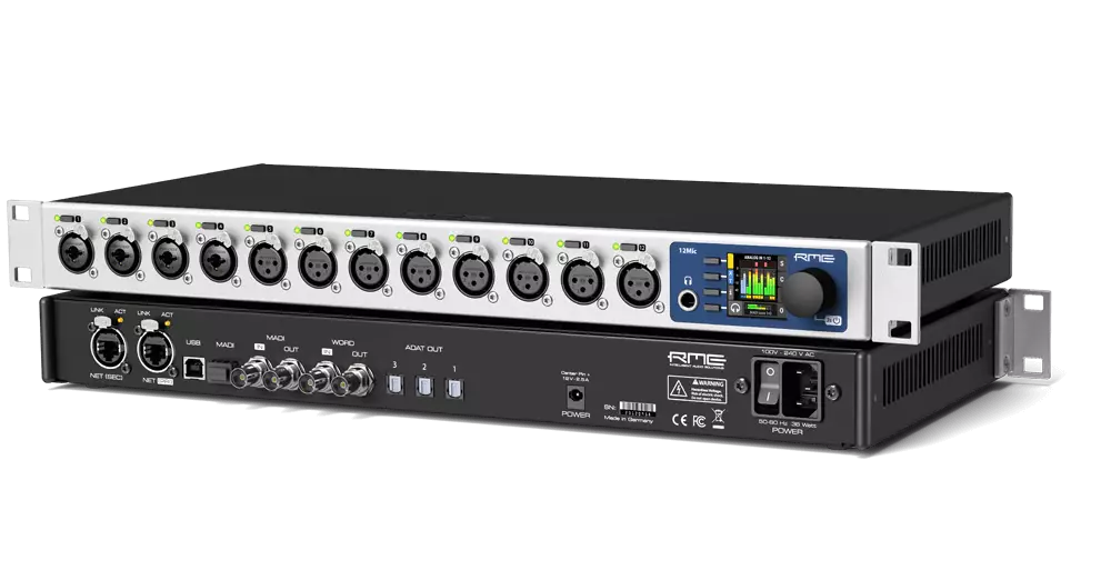 RME 12Mic on sarjansa ensimmäinen laite, jossa on kaksi MILAN-standardoitua, toisiaan varmistavaa verkkoväylää. Etuaste on täysin IEEE-yhteensopiva ja siis paikannettavissa ja ohjattavissa kaikilla AVB-ohjausyksiköillä (myös langattomasti Wi-Fi -yhteyden avulla) ilman erillisiä laitekohtaisia hallinnointiohjelmia. Kaikki yksikköön tulevat signaalit ovat reititettävissä verkon yli samalla kiinteällä latenssilla ja kaistanleveydellä ilman erillistä ohjelmointia. Etuaste on täysin plug-and-play itseasentuva.